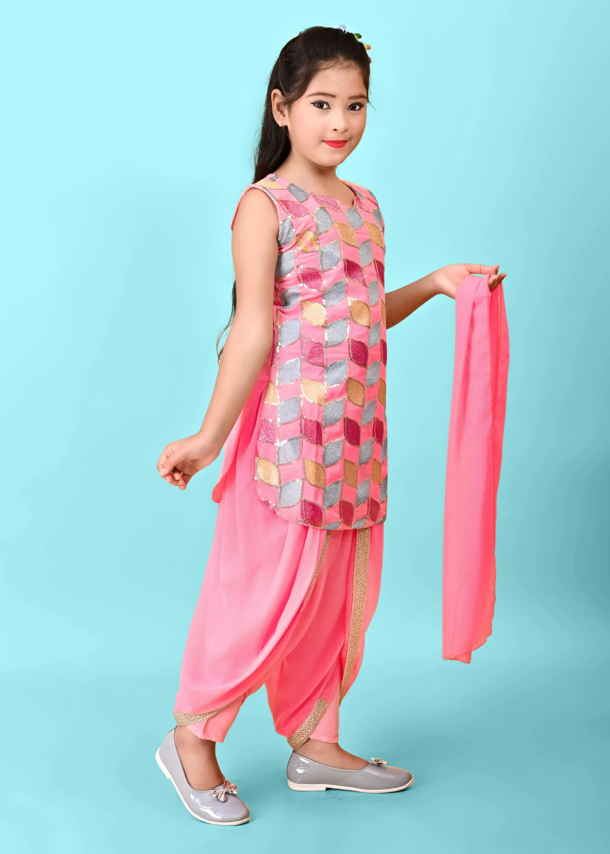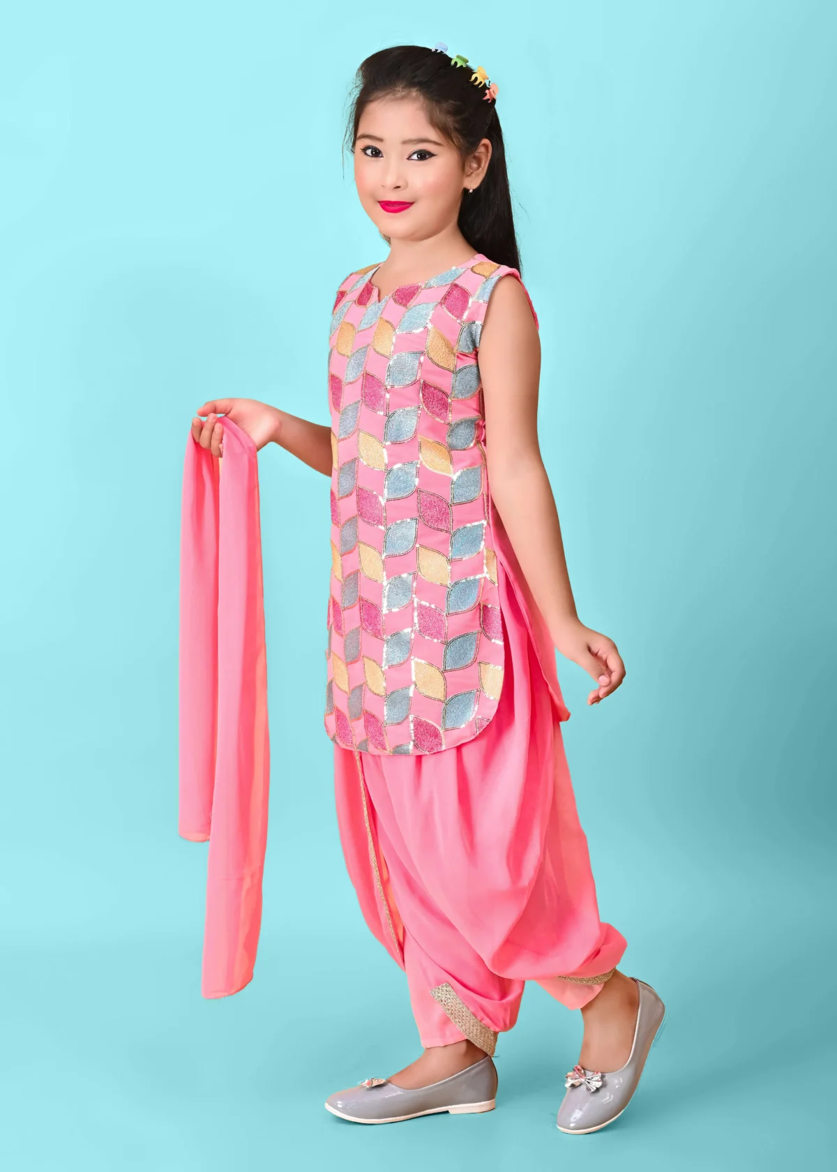 Elevate your little girl’s festive look with this charming Kurta and Patiala Set. Designed with vibrant colors and soft fabric, it’s perfect for parties, weddings, and celebrations.